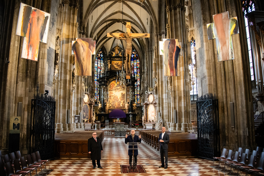 Ab Aschermittwoch werden im Wiener Stephansdom 77 Werke des verstorbenen österreichischen Avantgardekünstlers Arnulf Rainer aus der Sammlung Trenker ausgestellt. Wir waren bei der PRessekonferenz und der Eröffnung der Ausstellung mit der Kamera dabei.