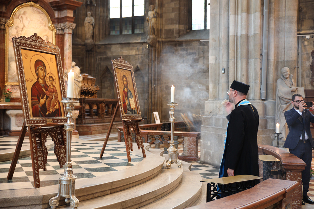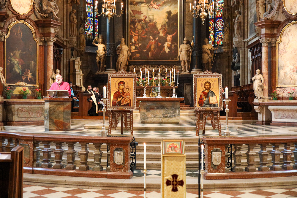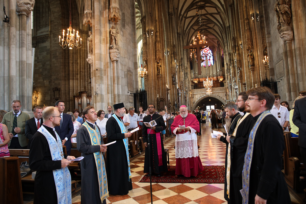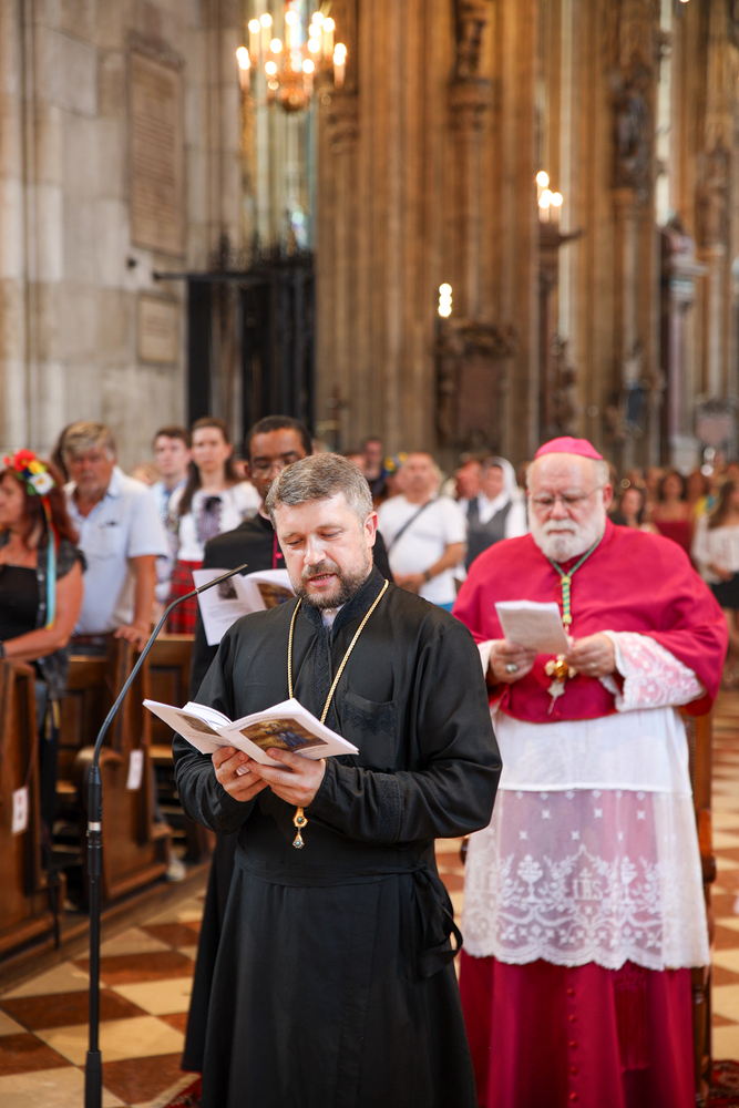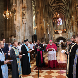 Ökumenischer Gottesdienst  aus Anlass des ukrainischen Nationalfeiertags im Wiener Stephansdom mit  katholische Ostkirchenordinariat gemeinsam mit der ukrainischen orthodoxen Gemeinde in Österreich sowie der ukrainischen baptistischen Gemeinde durch den Apostolischen Nuntius in Österreich, Erzbischof Pedro Lopez Quintana.