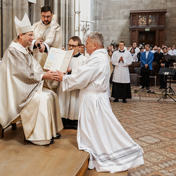 Am Samstag wurden in der Votivkirche in Wien sechs Weihekandidaten zu Diakonen geweiht. Die Weihe spendete Weihbischof Stefan Turnovszky.