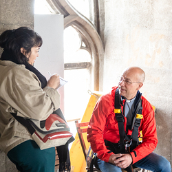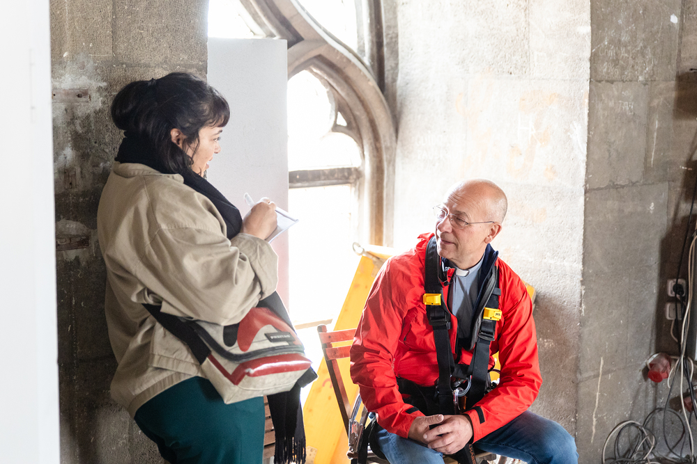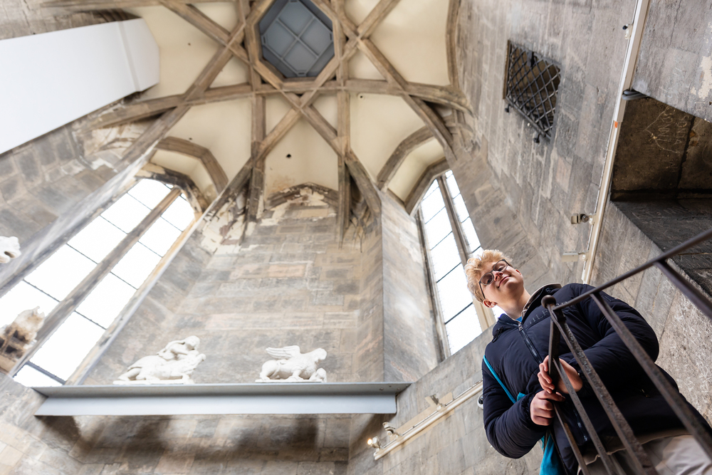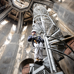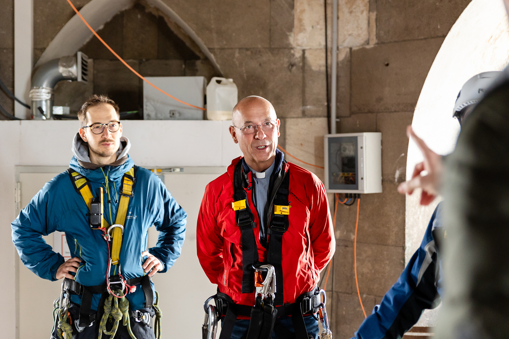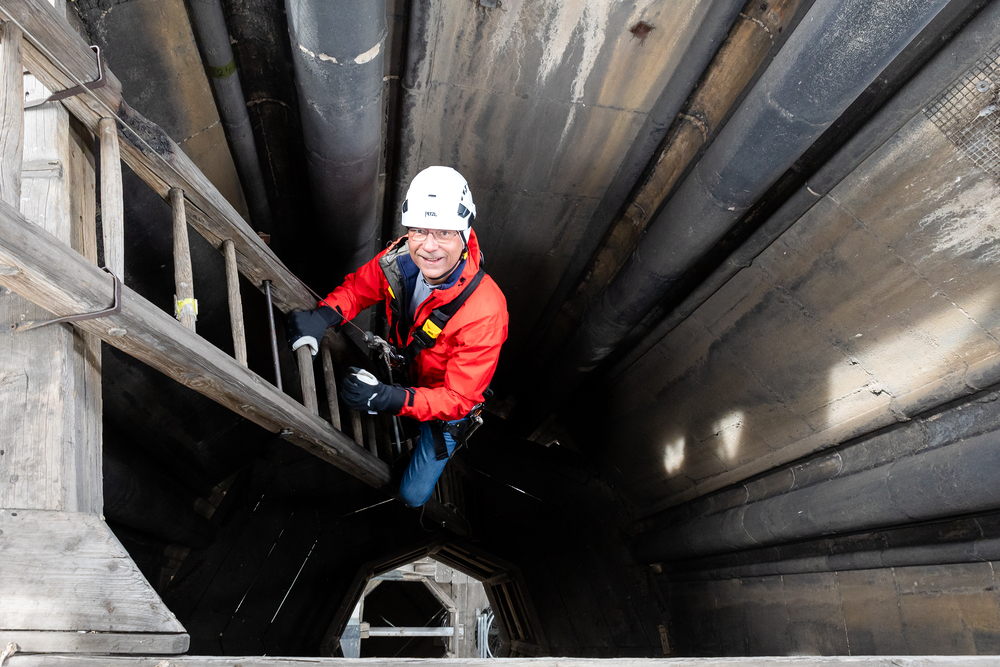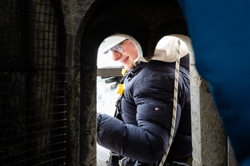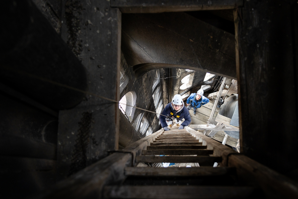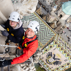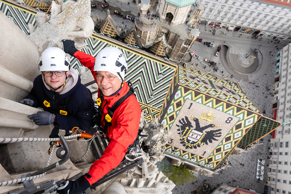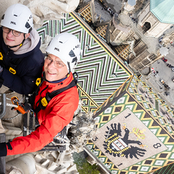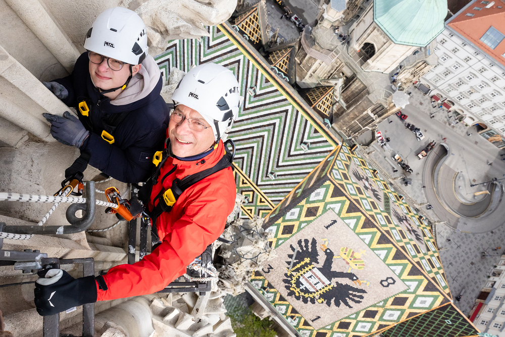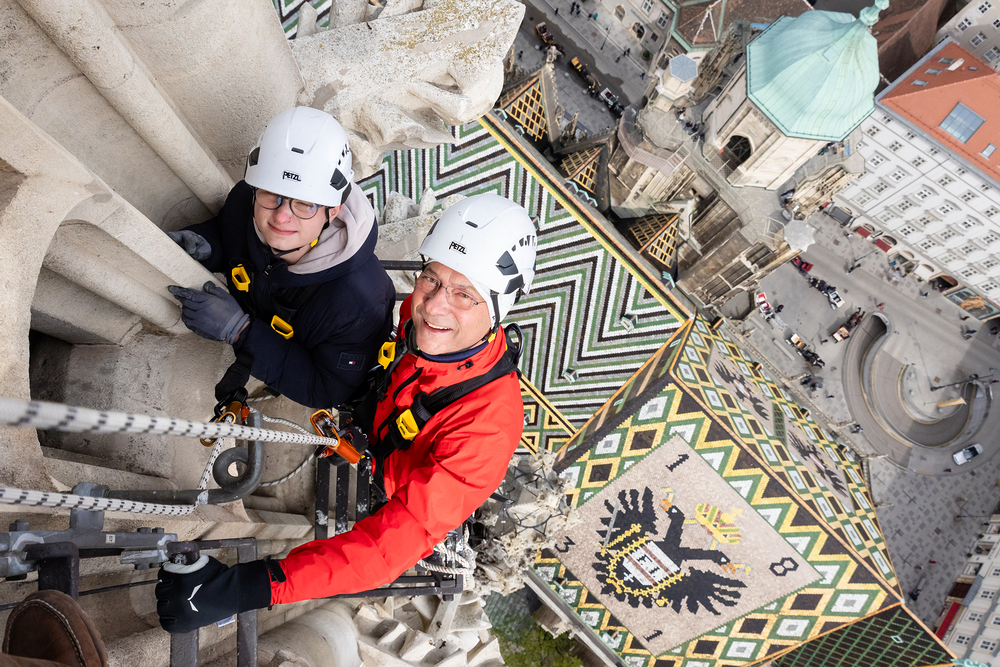 Im Vorfeld des Gottesdienstes bestieg Maturant Felix, der Gewinner des Preisausschreibens, mit Dompfarrer Toni Faber den 137 Meter hohen Südturm des Stephansdoms – ein Symbol für die Matura, die letzten Meter der Schulzeit. Wir haben die beiden mit der Kamera begleitet.