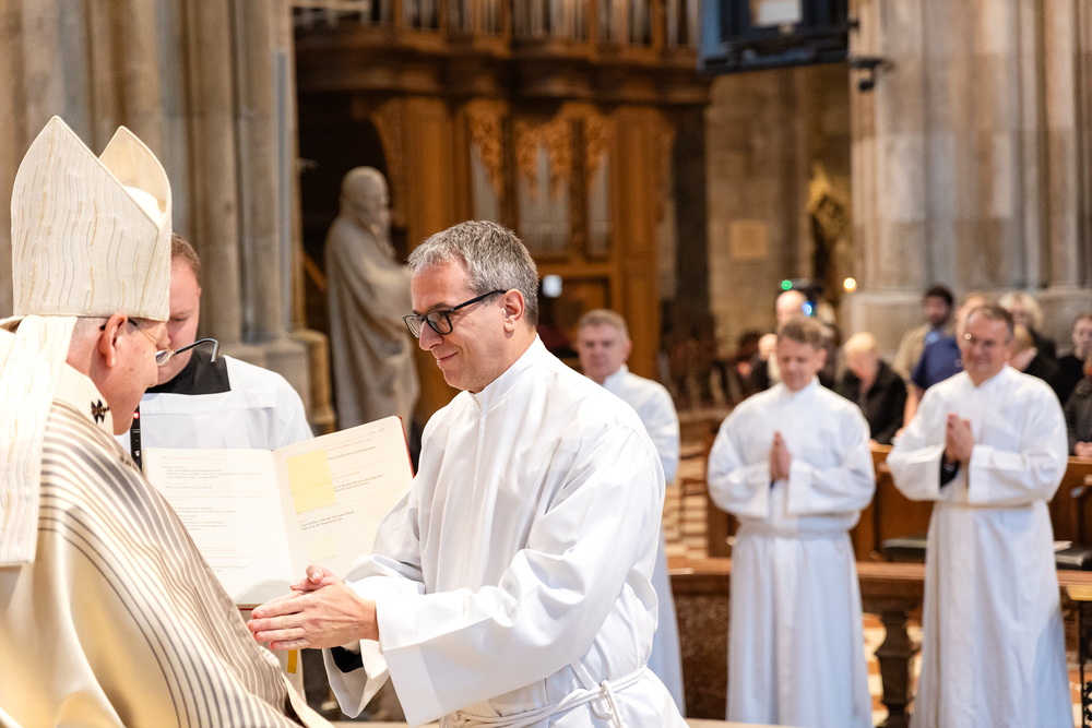 Am 9. November wurden sechs verheiratete Männer von Kardinal Schönborn im Wiener Stephansdom zu Ständigen Diakonen geweiht. Wir waren mit der Karmera mit dabei.